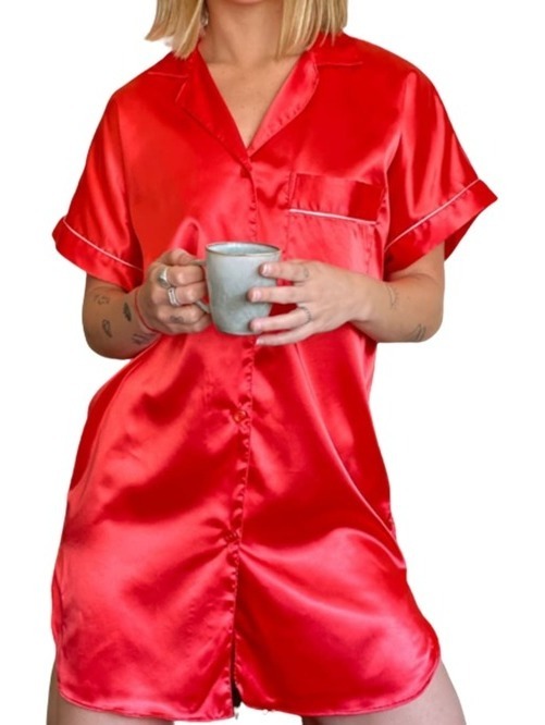 - Camisón De Raso Satén Remeron Con Botonera Manga Corta 201